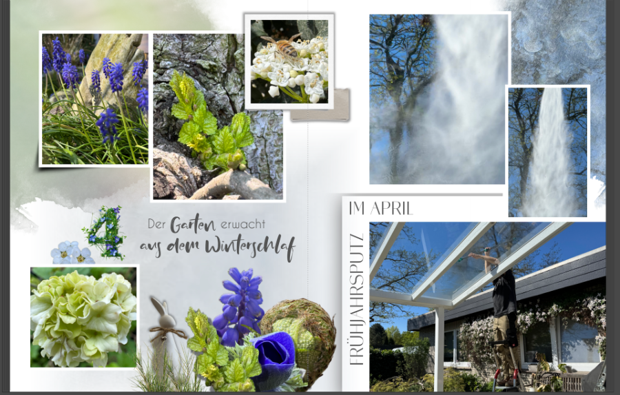 Re: Die Jahrbuchchallenge 2025 - AprilFür meinen April-Beitrag musste ich noch nicht mal ausm Haus gehen - wäre auch nicht möglich gewesen, denn ich saß an meinem Fotobuch. Auf der Terrasse aber musste zwischendurch der Frühjahrsputz gemacht werden und so ist auch eine Seite mit den ersten Frühjahrsblühern für das Jahrbuch entstanden. Wünsche allen weiterhin viel Freude an euren Objekten und Vorhaben für 2025 - Rosi