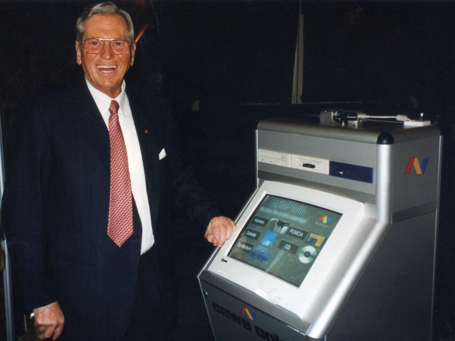 die Geräte sind grundsätzlich rot - sind die Geräte zweifarbig, so ist dies ein Hinweis auf die weitere Möglichkeit des Sofortdrucks. Sind Sie einfarbig, so sind nur Bestellungen (Labor) möglich. Um jetzt mal etwas aus dem Nähkästchen zu plaudern.... Mitte der 90er wurde die erste Digitalstation von uns entwickelt. Sozusagen der Vorgänger der heutigen Geräte. Unser Firmengründer Senator Heinz Neumüller stellte das erste Gerät 1997 auf der Hauptversammlung vor. Mit diesem Schritt offerierten wir dem Fotofachhandel neue Dienstleistungswege. Im Herbst 1997 wurde die erste digitale Annahmestelle in einem Fotofachgeschäft integriert und die Bestellung über das Web wurde möglich. Auf dem Foto befinden sich von links nach rechts, Wulf Schmidt-Sacht, Senator Heinz Neumüller und unser gegenwärtiger Vorstandsvorsitzender Dr. Rolf Hollander. Ich liebe dieses Bild! Alle sind stolz wie Bolle :-) Gemeinsam mit der Firma Agfa stellten wir 2001 die neuste Entwicklung der Digitalstation vor. Erstmals im roten Gewand und in kompakter Form. Damals hieß das Gerät "DigiFilm Maker". 2002 wurde das Produktsortiment der Geräte erweitert. Auf dem Foto befinden sich Michael Korn (Agfa) und Wulf D. Schmidt-Sacht (CeWe Color) 2003 der TXL mit erweiterter Bestellfunktion und großem Touch-Display. 2013 Der MXL mit Möbel und schickem Widescreen :-) Sylke Re: Einfach, schnell und direkt vor Ort - SofortfotosVielen Dank für den ausführlichen Bericht, war sehr interessant!