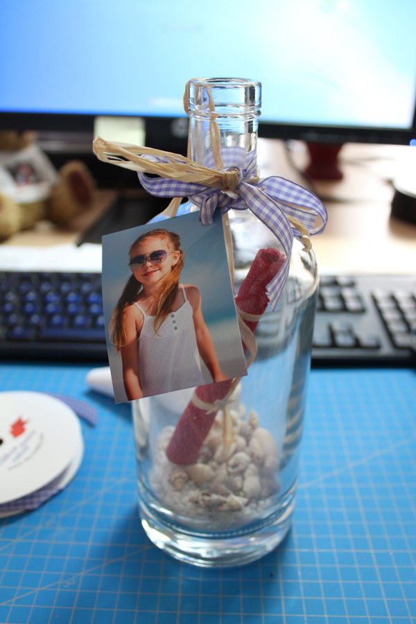Der Sommer steckt voller Fernweh nach dem Meer. Nicht selten zieht es Menschen an heißen Tagen an den Strand. Der weiche Sand liegt unter den Fußsohlen, das kühle Meereswasser benetzt die Beine, die Sonne wärmt die Haut und der Himmel erstrahlt in Azurblau. Passend zu dieser sommerlichen Zeit haben wir für Sie ein Tutorial vorbereitet, mit dem Sie Ihren liebsten eine passende Überraschung machen können. Egal ob Gutschein oder persönliche Worte mit dieser bunten Flaschenpost verschenken Sie garantiert auch ein kleines Stückchen Sommer. - Eine Nachricht (ein Gutschein, ein Brief, etc) - Ein kleines Foto - Muscheln, Sand und andere Dekoelemente Nun da Sie alle Materialien bereit haben, können Sie Ihre Sommerpost zu Recht machen. Schritt 1: Überprüfen Sie ob Ihre Flasche sauber ist. Sollten Sie eine alte Getränkeflasche verwenden, spülen Sie diese vorher gründlich aus und lassen Sie trocknen. Schritt 2: Während Ihre Flasche trocknet, können Sie mit Schritt 2 beginnen. Hierfür bereiten Sie ein Bild vor, dass Sie anschließend an Ihrer Flaschenpost festbinden. Dies könnte ein Foto der zu Person sein, an die Sie Ihre Flaschenpost richten. Vielleicht möchten Sie aber auch einen Gutschein für eine Reise in Ihre Post einfügen, dann könnten Sie auch ein Bild Ihres Reiseziels wählen. Für das Foto bieten sich zum Beispiel Fotosets im Bereich Sofortdruck an. Die Größe eines Passbildes passt gut an die Flaschenpost ohne Sie komplett zu verdecken. Ihre Flasche und das Foto liegen bereit? Dann können Sie nun Ihre Post vorbereiten. Rollen Sie Ihren Brief zu gut zusammen, dass er locker durch die Öffnung der Flasche passt. Anschließend können Sie noch ein Band um den Brief binden, das Sie am Korken oder Deckel der Flasche befestigen, sodass der Brief leicht aus der Flasche zu entnehmen ist. Sollte dies nicht möglich sein, können Sie das Band auch außen am Flaschenhals festbinden. Schritt 4: Bevor Sie Ihre Post in die Flasche tuen, können Sie dekorieren. Befüllen Sie Ihre Flasche mit Sand oder bekleben Sie das Glas mit Muscheln. Sie können sich viele kreative Möglichkeiten einfallen lassen, um Ihre Post bunt zu machen. Zuletzt als neu markiert von Ideenkiste am 08.08.2014, 07:47. Wer ist online?Mitglieder in diesem Forum: 0 Mitglieder und 4 Gäste