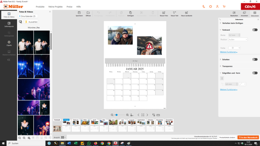 gern möchten wir dir weiterhelfen, hierfür benötigen wir jedoch ein paar weitere Informationen. Welche Version der Software nutzt du und welchen Handelspartner hast du hinterlegt? Teile uns zudem bitte mit, welches Kalenderdesign du gewählt hast und übersende uns einen Screenshot der Ansicht der Menüleiste. Entweder hier als Antwort auf den Beitrag oder gern auch als E-Mail an forum@cewe.de. Viele Grüße Melanie Re: Auswahlen fehlenIm Anhang die Screenshots. Ich arbeite mit der software von Müller. Gewählt habe ich "Terminwandkalender A3 frei gestaltbar".