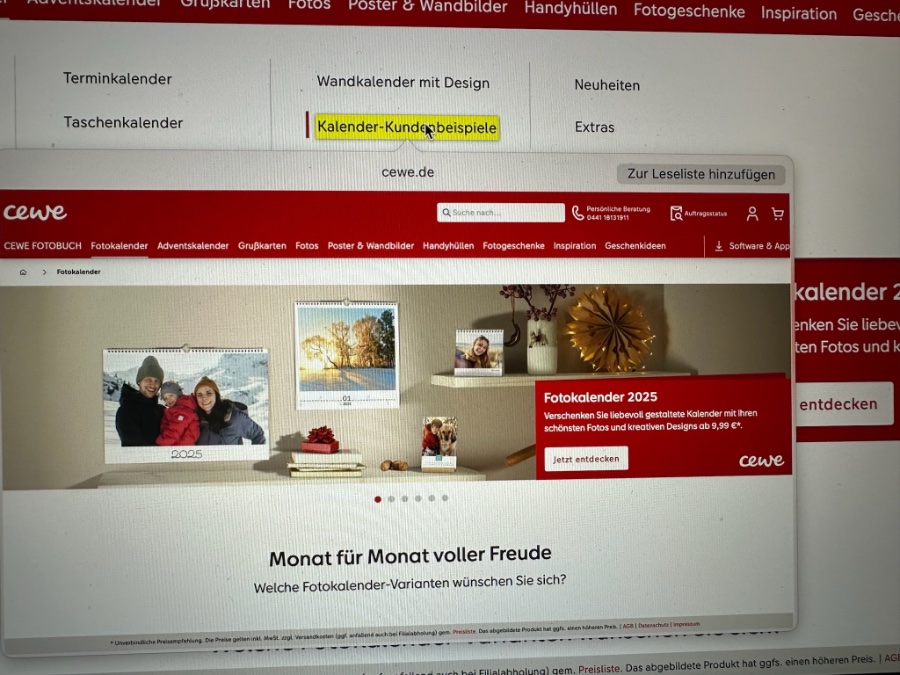 https://www.cewe.de/fotokalender.html#71 und dann wie von Heidi55 abgebildet: Kalender-Kundenbeispiele