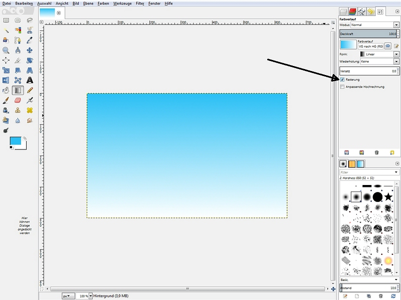 Farbverlauf möglich bzw. warum hat fertige Bilddatei Abstufungen?Betriebssystem: Windows