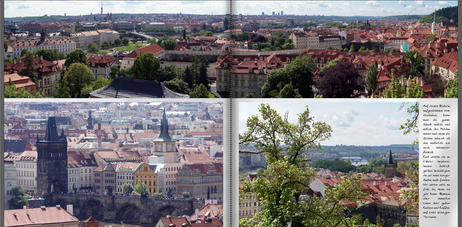 Re: Fotobuch auch als Internetvariante?Es ist zwar mit etwas Arbeitsaufwand verbunden, aber ich mache von allen Seiten im Vorschaumodus einen Screenshot, wobei das Bild bei meiner 1920x1080er Auflösung sicher größer ist, als die bei den Anbietern verfügbaren Ansichten. Ein bisschen zuscheiden und es passt. Wenn du das dann beispielsweise bei Dropbox hochladest, kann das dein Gegenüber wieder herunterladen und ansehen. Die Datenmengen sind auch nicht so groß, ein Buch mit 80 Seiten hat bei mir etwa 28 mb. Einzig die strichlierte Linie in der Seitenmitte ist ein wenig störend (siehe unten). Aber wie gesagt es ist ein wenig Arbeit.
