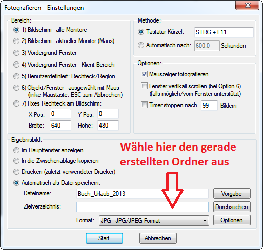 man könnte einzelne Screenshots machen. In InfranView kann man auch ein automatischen Speichern einstellen, sodass man schnell Bilder eines ganzen Buches machen kann. Beispiel: Man legt einen Ordner auf dem Desktop oder in den eigenen Dateien an, den man nach dem Projekt benennt. Dort werden später die Screenshots gespeichert. Diese einzelnen Datein könnte man danach sogar zu einem pdf zusammenfügen. Re: Fotobuch auch als Internetvariante?Danke für die gezeigte Möglichkeit! Scheint wirklich schnell und einfach zu sein. :) :)