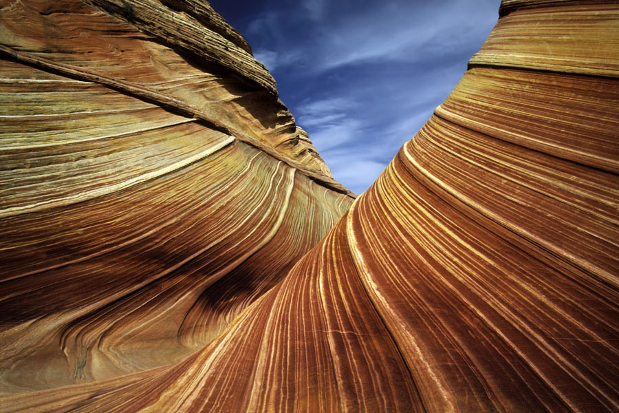 Dazu muss ich ausholen:Zu analogen Zeiten habe ich fast nur Dias mit fuji velvia 50 fotografiert. Z.B. im wilden Südwesten der USA "musste" bei mir trotz rotdominanten Films, strahlend blauen Himmels, satten Sandsteinfarben und fotogener Nachmittagszeit dazu immer der Polfilter vor die Linse. Das Ergebnis auf der Leinwand zu Hause (Wochen später) entsprach meiner Stimmung, die ich während der Aufnahme hatte: kontrastreiches Foto, warmer Rotton des Steins und kräftig blauer Himmel mit stahlenden Wolken. Z.B. so: Aber, wenn ich heute den 555. Sonnenuntergang digital fotografiere, drücke ich immer kräftig auf die "Tube" und verwende dazu das entsprechende Motivprogramm der Kamera. Das Ergebnis bearbeite ich zudem sogar noch nach. Und schon bin ich beim Betrachten wieder mitten im Urlaub... So entdecke ich oft Objekte, Motive, Stimmungen, Szenen ..., bei denen nach meinem Empfinden das gewisse Übertreiben "Not tut". So setze ich auch schon mal die falsche HDR-Fotobearbeitung (Photomerge mit PSE) ein. All das soll erklären: Ich will (ein bisschen) beschissen werden, wenn ich mir die Bilder angucke, denn das entspricht eher meinem Gefühl bei der Aufnahme. Und auch möchte ich das aufwändig gestaltete Foto im Fotobuch nun wirklich nicht blass und flau gedruckt haben... Dann drücke ich lieber auf die ABO-an-Taste. Guckst Du: erst das Original und dann nach starker Bearbeitung Lieber Gruß, pitty