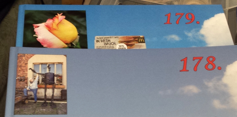 Wie ihr wißt, mache ich meine Bücher auf Fotopapier. Hierbei wird nur das Cover in Offset gedruckt, welches Verfahren ja viel anfälliger für Farbabweichungen ist. Meine Bücher sind (sollen sein) identisch, was das Außendesign betrifft. Immer das gleiche Himmelbild ist auf dem Cover. Dass es praktisch noch nie gelungen ist, zweimal die gleiche Farbe in der Druckerei herzustellen, damit habe ich mich abgefunden, es gibt ja Fertigungstoleranzen, und kleine Abweichungen sind nicht so schlimm, wobei es einige Male schon ziemlich krass war. Aber bis jetzt gab ich Ruhe und betrachtete das Regal als Regenbogen und basta. Aber als meine Lieferung 530950-184768 ankam, habe ich den Schluckauf bekommen. Ansonsten sieht man die Unterschiede auch schon, meist wenn die Bücher nebeneinander sind, aber diesmal hat mich die apselut abweichende Farbe schon in der DM-Filiale regelrecht angeschrien! Ich habe das Buch nicht zurückgeschickt, denn es ist ja "nur" der Cover, und die Innenblätter sind ja auf Fotopapier und daher OK, aber bei einem Offsetbuch wäre es eine Katastrophe! Was ist bitte hier geschehen? Das kann man keinesfalls mehr als "Fertigungstoleranz" ansehen! Ich zeige euch den "Shock-Gegenstand". Ich habe es mit und ohne Blitz auch fotografiert, denn von der Belichtung hängen Farbnuancen ja auch ab, aber der Unterschied ist wirklich brüllend zu sehen. Auch im Bücherregal, welcher jetzt noch mehr nach Regenbogen aussieht... In der oberen Reihe des Regals sieht man auch zwei etwas grünlichere Exemplare (mitte links) aber größtenteils ist es okay... aber die schief liegenden in der unteren Reihe sind schon extra bunt. Und das letzte... Als ob in der letzten Zeit die Farbtöpfe öfters umgekippt und nachlässig wieder zusammengegossen wären :) Kann man irgendwie bewirken, dass der Offsetdruck und die Farben dadrin ebenfalls irgendwie "standardisiert" sein könnten? Theoretisch sind sie ja, aber in der Praxis, meine ich? LG OldNat LG Old Nat, der Dino