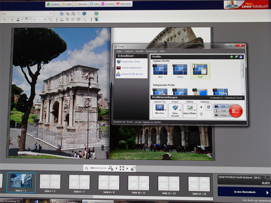 Während das Fotobuch offen ist, startet ihr snag-it und markiert eine Fotobuchseite. --------------------------------------------------- Re: Warum kein Probe-Ausdruck vor Versenden des Fotobuchs?Sylke hat geschrieben: Hallo zusammen,