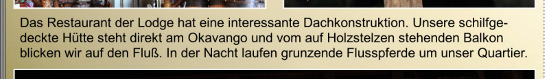 warst Du in Botswana? Die Lodge kommt mir bekannt vor! Wegen der aktuellen Diskussion zum ß: Du kannst alte oder neue Rechtschreibung verwenden, wie Du willst. Vielleicht aber nicht beides gleichzeitig? Wenn Du Dein Buch noch mal drucken lässt, könntest Du dich ja gegen den Fluß oder gegen die Flusspferde entscheiden. Egal wie - Schade um den Fehldruck. Ich leide mit Dir und finde die Lösung genial. Lieber Gruß, pitty