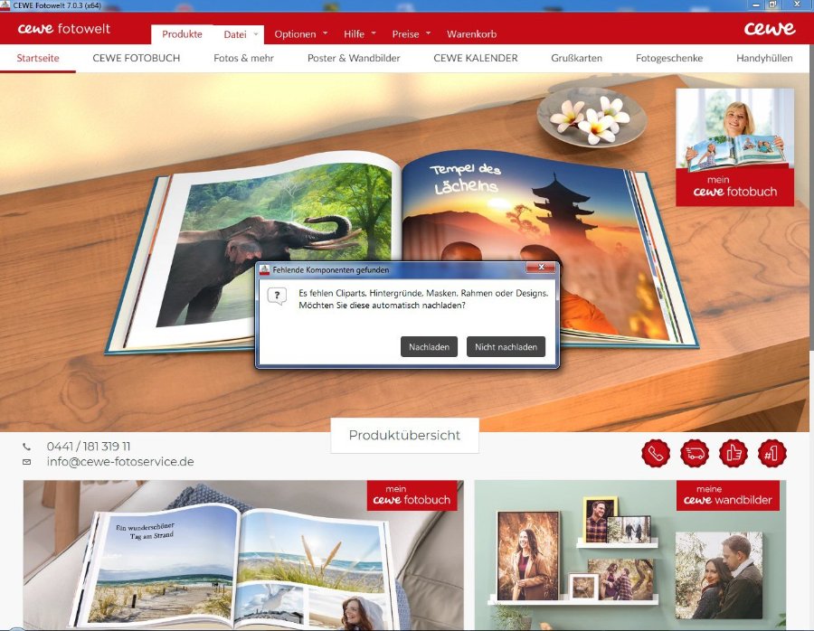Re: Fehlermeldungen beim Laden der Software und des FotobuchesZusatz: