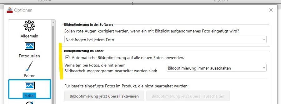 hast du für das Bild eventuell die automatische Bildoptimierung aktiviert? Schreibe uns gerne eine E-Mail mit dem Betreff "Forum: Ebenen im Druck sichtbar" an forum@cewe.de und füge deine Auftragsnummer mit ein, wir prüfen dann, wie es dazu gekommen ist. Viele Grüße Kay Re: Ebenen im Druck sichtbarIch habe gerade nochmals geschaut: Malen schaltet die ABO automatisch aus, weil dies als Bildbearbeitung zählt. Zumindest, wenn Du in den Einstellungen hier nichts anderes ausgewählt hast: