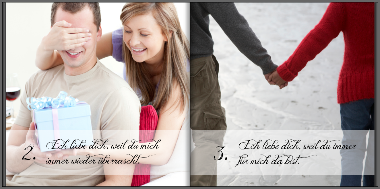 Am 14. Februar ist es wieder so weit: Valentinstag steht vor der Tür. Fassen Sie zum Beispiel mit Fotos und kleinen Texten zusammen, wie sehr Sie Ihren Partner schätzen. Dafür können Sie Gründe aufzählen, wegen denen Sie Ihrem Partner lieben oder Wert schätzen. Werden Sie kreativ und verschenken Sie zum Valentinstag persönliche Erinnerungen! Zuletzt als neu markiert von Sonja am 04.02.2014, 09:17. Liebe Grüße