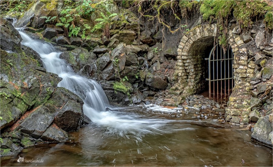 dieser kleine Bach plätschert an einem alten Stolleneingang vorbei.