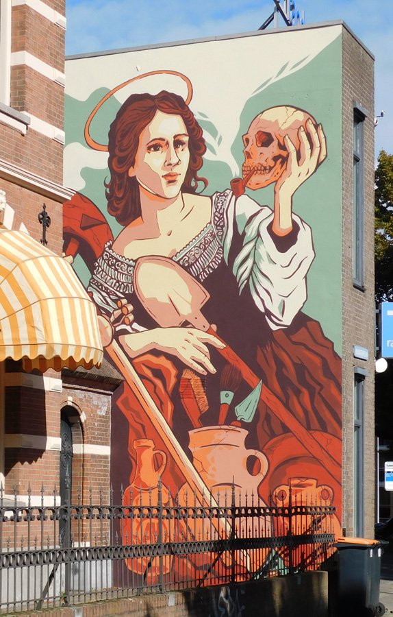 Die Blind Walls Gallery in Breda umfasst weit mehr als 100 verschiedene Zeichnungen. Hier ist „Catharina von Alexandria“ (die Heilige Katharina), die im Mittelalter u.a. als Beschützerin der Pestopfer galt, abgebildet. Liebe Grüße