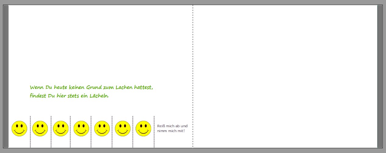 Tipp: Durch den Einsatz von kleinen Details wirkt die Gestaltung stimmiger. Fügen Sie also beispielsweise neben der letzte "Perforationslinien" ein Textfeld mit dem Satz: "Reiß mich ab und nimm mich mit!" ein.