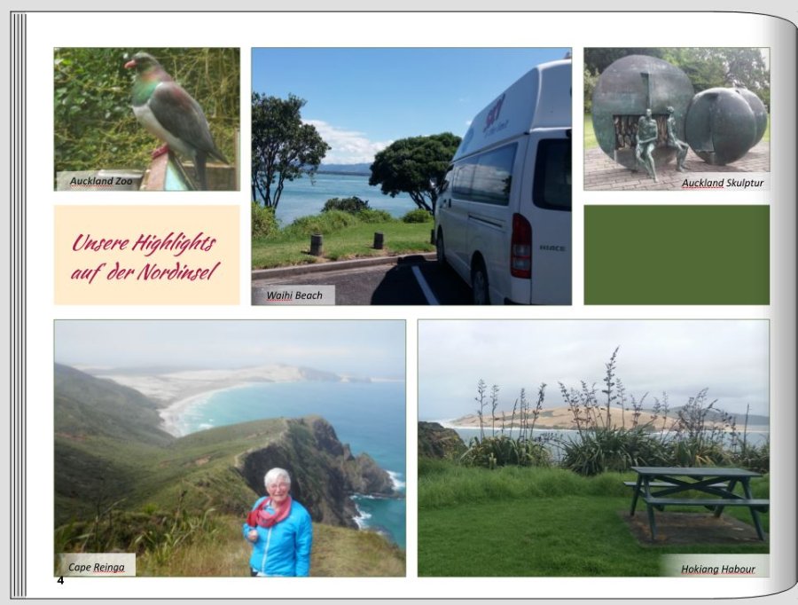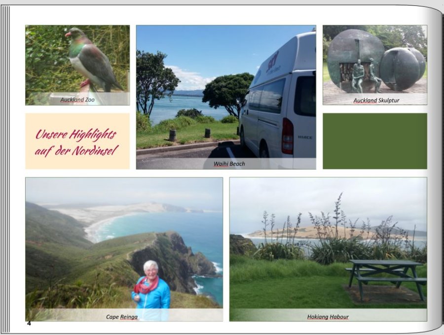 Auch bei der Doppelseite vom Auckland Zoo hadere ich mit mir, wie die Anordnung besser wirkt.