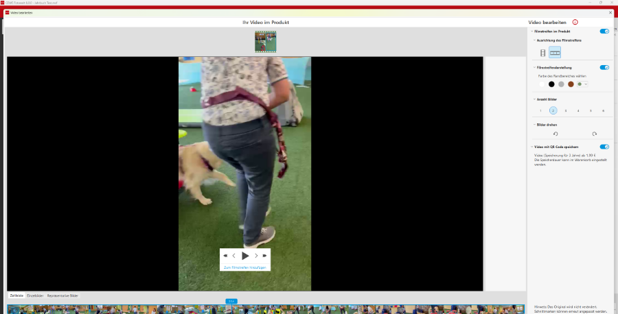 Kann ich, wenn ich das komplette Video mit QR Code einfüge, dies auch noch etwas bearbeiten im Cewe Programm ? _ Ende etwas vorher und am Anfang ein Foto als Start einfügen?