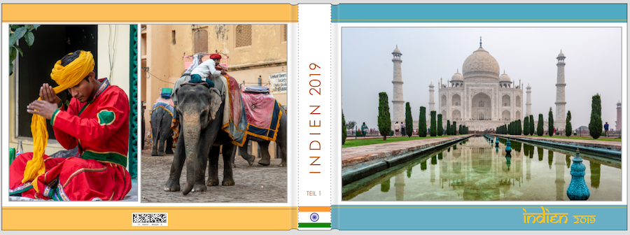 Ein Bild auf dem Cover gefällt mir grundsätzlich auch besser als zuvor zwei. Ich finde es nur schade, dass dadurch das Wasserbecken im Vordergrund fast komplett weggeschnitten wird und so die wunderbare Spiegelung des Taj Mahals, die man darin sehen kann, komplett verschwindet. Auf der Rückseite würde ich die Motive variieren und nicht zweimal ähnlich ausgerichtete Gebäudefassaden zeigen. Vielleicht hast Du auch Inder*Innen in ihren schönen farbigen Gewändern fotografiert und magst damit etwas kombinieren? Und eine Anmerkung noch zur Schrift. Scheinbar schreibst Du die Anfangsbuchstaben von z.B. "New Delhi" größer als die übrigen Buchstaben. Das kommt so in der gewählten (indischen) Schrift nicht vor und der versetzte Strich wirkt entsprechend unstimmig. Der Strich ist im originalen Schriftbild immer auf einer Linie. Wenn Du gerne Groß- und Kleinschreibung hervorheben willst, würde ich mich für eine grundsätzlich andere Schrift entscheiden. Schreibst Du im ganzen Buch im selben Orange-Ton? Hast Du mal probiert, dies pro Seite zu variieren und Orange- bzw. Brauntöne dabei aus den jeweiligen Fotos zu picken? Ich denke, das könnte stimmiger wirken. Liebe Grüße
