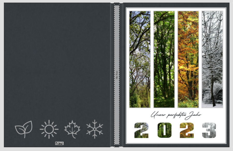 ich würde die Streifen auch nicht so lang machen. Ich würde sie auf jeden Fall etwa um die Hälfte kürzen, eventuell auch wie DSL-schnell schreibt als Quadrate gestalten. Den Text würde ich darunter schreiben und nicht so zwischen die einzelnen Bilder. Auf alle Fälle würde ich die Verlaufsmasken entfernen. Die schlucken immer viel von der Farbe, besonders bei schwarzem Hintergrund. Ich denke, wenn du die Verlaufsmaske herausnimmst, wird die Wirkung der Seite schon eine ganz andere sein, egal ob weißer oder schwarzer Hintergrund. Wenn du im Buch einen hellen Hintergrund verwenden willst, würde ich mich beim Cover wahrscheinlich auch eher für die helle Variante entscheiden. LG Sternenstaub Re: Zu dunkel ?Ich schließe mich da an. Nachdem du ein Hochformat gewählt hast, würde ich das nicht noch unterstreichen. Ich würde 2/3 Bäume und 1/3 Text vorschlagen. Verlauf gefällt mir auch nicht, das nimmt zu viel vom Baum weg. Schrift würde ich nicht senkrecht schreiben, dazu ist es zu viel Text. Wenn du in der Höhe reduzierst, ist dann ja noch genug Platz für waagerechter Text.