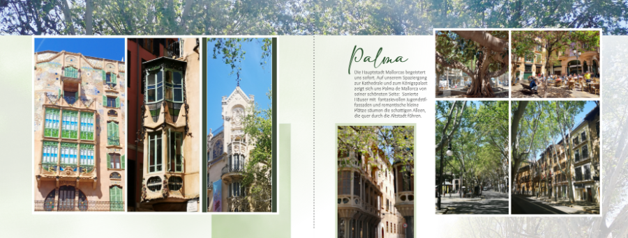 mein Buch über meinen Mallorca Urlaub im Frühjahr ist fast fertig. Nur eine Seite will mir nicht gelingen, ich habe keine Ideen mehr. Ich poste mal die Seiten, die ich über Palma habe. Irgendwie harmoniert die Seite mit der Kathedrale (3.Bild) nicht mit den anderen? Oder doch? Die Seite ist schon ein bisschen langweilig? Was meint ihr? Kommentare/Kritik zu allen Seiten sind stets willkommen. Liebe Grüße