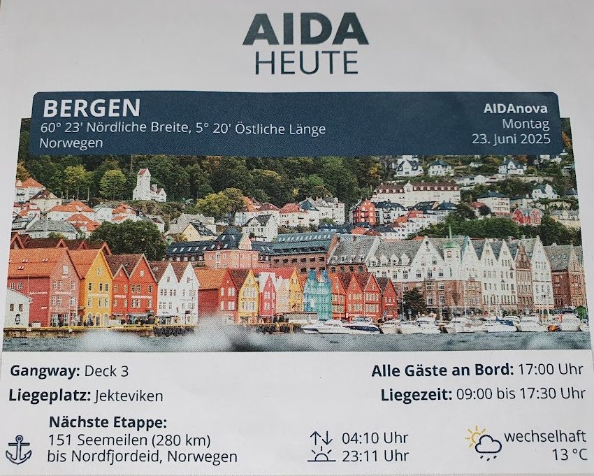 Kunigunde Re: welchen Kapitelöffner soll ich nehmen?Hallo Kunigunde, auf allen AIDA Schiffen gibt es täglich einen Programm Flyer mit diesem Kopf