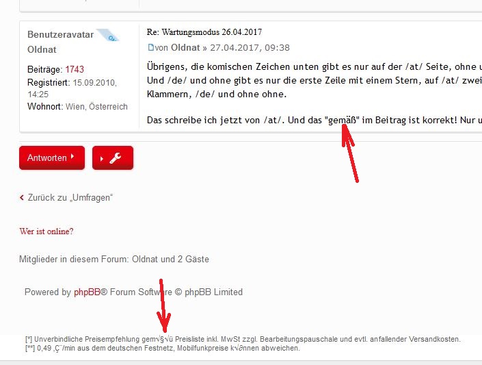 Übrigens, die komischen Zeichen unten gibt es nur auf der /at/ Seite, ohne und mit /de/ ist das "gemäß" korrekt geschrieben.