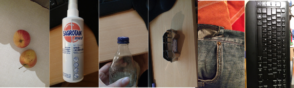 Apfel, Desinfektionsmittel, Verschlussdeckel, Ettikett (ich war mir nicht sicher, ob VW-Bus zählt, aber es ist eindeutig ein Preis-Ettiket drauf ;-) ), Niete, Tastatur Re: 1. Dezember | Kategorie: Fotografieliebe Grüße