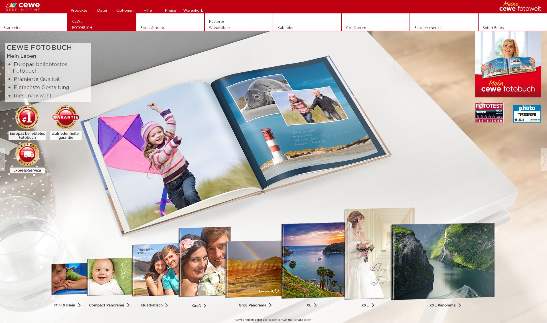 Schöner, besser und umfangreicher geht unsere neue CEWE FOTOWELT 6.0 an den Start. Lassen Sie sich überraschen! Neue Funktionen und Möglichkeiten! Bei der CEWE FOTOWELT 6.0 steht die intuitive Bedienbarkeit im Vordergrund. Die neue Version bietet einen optisch neuen Einstieg in die Software und eine benutzerfreundliche Navigation durch alle Bereiche. Diese neue Navigation finden Sie in Kürze bei allen CEWE Anwendungen und Geräte wieder. Der Produkteditor wartet mit einem neuen Foto-Explorer auf. Sie erhalten eine Vorschau auf Ihre Ordnerinhalte und können diese direkt anwählen. Wählen Sie zwischen 3 unterschiedlichen Ansichten, die nach Belieben mit oder ohne Dateiinformationen angezeigt werden können. • Erlebnisansicht • Momenteansicht • Tabellenansicht Filtern Sie Ihre Bilder in allen Programmbereichen (Foto-Explorer, Assistent, cewe myphotos) nach Name, Wertung und/oder Kameratyp. Unser besonderes Highlight ist Fotobearbeitungssoftware cewe myphotos. Sie ist Bestandteil der CEWE FOTOWELT und ersetzt die bisherige Fotoschau. Die cewe myphotos lässt sich schnell über die bekannten Möglichkeiten der Software starten. Ein kurzer Überblick: • Die cewe myphotos beinhaltet eine Vielzahl an Bildbearbeitungsfunktionen. • Die cewe myphotos ermöglicht das Anlegen und Löschen von Ordnern. • Die cewe myphotos bietet verschiedene Ansichten (Momente-, Erlebnis- und Tabellenansicht) • Die cewe myphotos bietet eine Filterfunktion • Die cewe myphotos bietet eine verbesserte Lesefunktion für mehr EXIF und XMP-Daten • Die cewe myphotos ist auch als eigenständige Software (ohne die CEWE FOTOWELT) installierbar. Ab Version 6.0 können Sie die Größe Ihres Textes ganz einfach ändern. Neben dem bekannten Dropdown Menü, können Sie nun über die neuen Funktionstasten oder noch einfacher, über einen Tastenkürzel, die Textgröße anpassen Des Weiteren haben unsere Liefer- und Expressdienste für Sie erweitert. So findet Ihr persönliches Fotoprodukt noch schneller zu Ihnen. Erweiterung des Produktsortiments! CEWE FOTOBUCH Premium Matt XXL & XXL Panorama Ob Fernreise oder Traumhochzeit: mit einem Format von 38 x 29 cm und bis zu 98 Seiten gibt das CEWE FOTOBUCH Premium Matt XXL und XXL Panorama den schönsten Momenten besonders viel Raum. Das matte Digitaldruckpapier vermeidet ungewollte Reflexionen auf de Bildern und ist unempfindlich gegenüber Staub und Fingerabdrücke. CEWE FOTOBUCH Campact Panorama auf Fotopapier Mit diesem CEWE FOTOBUCH im praktischen Format von ca. 19 x 15 cm geben Sie Ihren wertvollsten Fotos viel Raum. Besonders Freunde von Bildern im Querformat schätzen das CEWE FOTOBUCH Compact Panorama: Die eigenen Aufnahmen kommen dadurch besonders gut zur Geltung. CEWE FOTOBUCH Geschenkbox Ein CEWE FOTOBUCH ist das persönliche Geschenk für besondere Anlässe – von der Hochzeit, über runden Geburtstag oder Geburt, bin hin zu Weihnachten. Die hochwertige Geschenkbox mit wertigem schwarzem Leinenüberzug rundet dieses emotionale und individuelle Präsent sicht- und fühlbar perfekt ab. Erhältlich für 5 Formate des CEWE FOTOBUCHs, sorgt die Geschenkbox mit einer Einlage in Samtoptik und einem Magnetverschluss für eine edle Präsentation. So wird bereits das Auspacken des CEWE FOTOBUCHs zu einem ganz besonderen Erlebnis. Später ist die Geschenkbox der ideale Aufbewahrungsort für die gebunden Erinnerungen, die der Beschenkte gern wieder hervorholt. Tischkalender Quadratisch Das einzigartige quadratische Format (14 x 15 cm) eignet sich besonders, um Ihr Büro oder Ihre Wohnräume zu verschönern und ist das perfekte Geschenk für Familie, Freunde und Kollegen. Sie können den Tischkalender mit Ihren persönlichen Fotos gestalten und aus unterschiedlichen Designs und Kalendarien wählen. So wird Ihr Kalender zu einem echten Unikat. CEWE CARDS mit farbigen Umschlägen Unterstreichen Sie einen ganz persönlichen Anlass mit einem farbigen Umschlag. wie wäre es mit einem cremefarbigen Umschlag zur Hochzeit? Die Farben Hellblau und Rosa bieten sich zur Geburt oder Taufe einen Kindes an. Die farbigen Umschläge sind für die Klapkarten Klassi und XL erhältlich. Fotoleiste Bringen Sie Ihre schönsten Momente als CEWE WANDBILDER auf unsere Fotoleiste. Wählen Sie zwischen Querformat oder Hochformat, um die richtige Wirkung für Ihren Wohnraum zu erzielen. Der besondere Stil der Fotoleiste erzeugt bei Ihnen Zuhause ein charaktervolles und modernes Wohngefühl. Premium Poster Unser Premium Poster stellt für Liebhaber schöner Bilder ein Juwel dar. Das liegt vor allem an der professionellen Qualität. Jede Papiersorte gibt Ihrem Motiv eine einzigartige Wirkung. Gestalten Sie Ihr Premium Poster je nach Geschmack mit unserer hochwertigen Design- und Layoutauswahl. Das Premium Poster ist in Perlmutt, Glänzend und Matt erhältlich. Spielkarten frei gestaltbar Schöner kann ein Blatt nicht aussehen! Ob im TV, beim Stammtisch oder mit der ganzen Familie zu Hause: Kartenspielen liegt voll im Trend. Quartett, Skat, Poker und Doppelkopf gestalten Sie ab sofort die Vorder- und Rückseite nach Ihren eigenen Vorstellungen. Außerdem im Sortiment der 6.0 - diverse Direktdruck- und Leinwandformate. Hier finden Sie garantiert die das richtige Format für Ihren Wohnraum! Sylke Wer ist online?Mitglieder in diesem Forum: 0 Mitglieder und 1 Gast