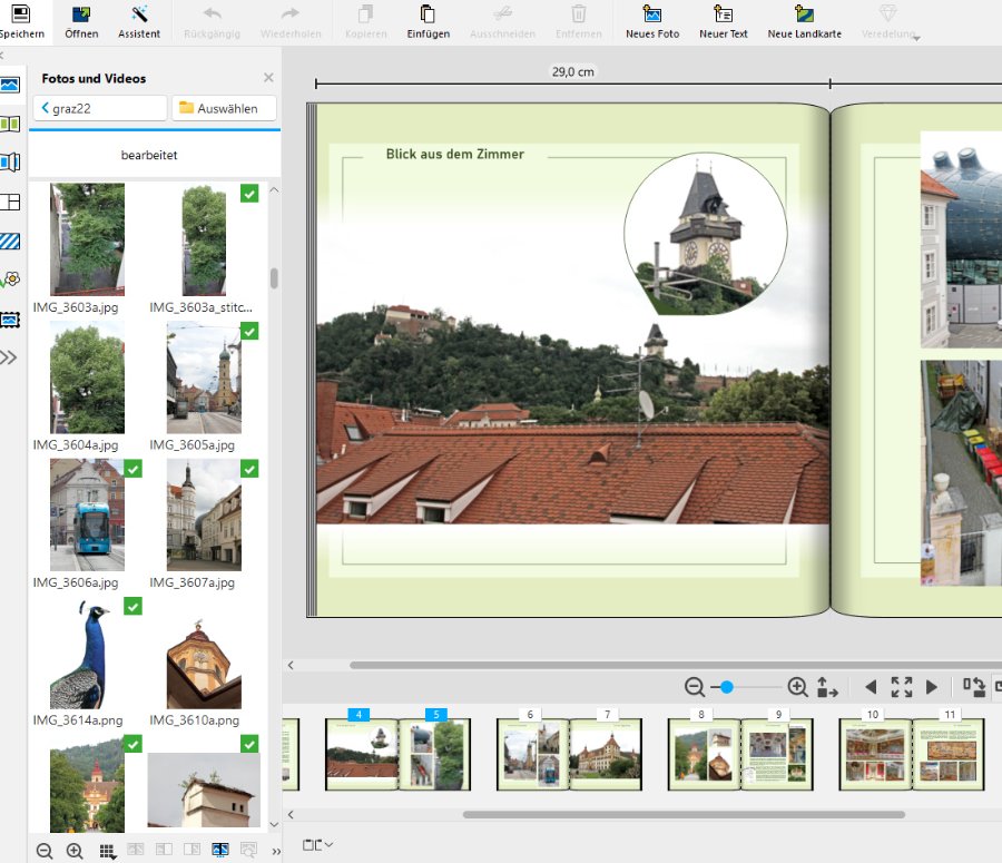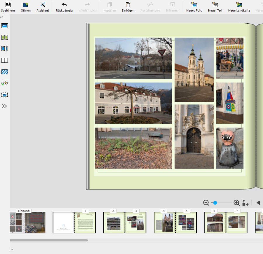 Versionsnummer: 7.4.4. Handelspartner: Pixum Beschreibung: Ich habe leider nichts gefunden, und bin verunsichert, ob es an meinem PC oder an der Software (ich verwende für dieses Projekt die Version 7.4.4.bei Pixum) liegt. Normal ist es doch so, dass wenn man das Menü auf der linken Seite aufklappt, das Buch nach rechts rutscht, sodass man weiterhin das ganze Buch sieht. Auch sieht man bei "Miniaturansicht unten" neben der ausgeklappten Menüleiste dieses kleine Buch und den Pfeil, wo man die Ansicht umstellen kann. Nachdem ich von der Miniaturansicht unten (verwende ich normal zum arbeiten) auf Miniaturansicht vollflächig gewechselt bin (verwende ich um Seiten in der Reihenfolge zu verschieben) und dann wieder zurück auf Miniaturansicht unten gewechselt bin, ist es plötzlich so, dass sich bei Ausklappen der Menüleiste links (Hintergründe, Fotos, egal was) sich diese über das Buch legt (und man nicht mehr die ganze Seite sieht) Auch dieses kleine Symbol "Miniaturleiste" sieht man nicht mehr. Auf der rechten Seite (dekorieren etc.) wird das Buch wie gewohnt zur Seite gerückt, wenn man die Menüleiste ausklappt und das Buch "rutscht" zurück, wenn man sie wegklickt. Kennt das jemand? Wie stelle ich das wieder um, falls ich da unwissentlich etwas verstellt habe? Es ist nämlich sehr, sehr mühsam, wenn ich die Menüleiste immer wieder wegklappen muss, damit ich die Seite bis zum Rand sehe. Vorgehensweise: 1. ...von Miniaturansicht unten auf Miniaturansicht voillflächig gewechslt und wieder zurück 2. ... 3. ...