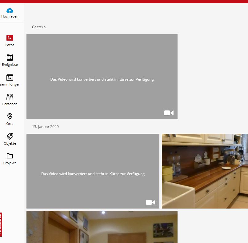 ich weiß nicht, ob das Thema hier richtig ist... Ich probiere derzeit die Cloud von Cewe MyPhotos aus, muss aber feststellen, dass das Laden eines Fotobuches in die Cloud extrem viel Zeit verschlingt ( über 3 Stunden, obwohl ich einen guten Internetzugang habe), das Gleiche passiert jetzt, wenn ich Videos in die Cloud laden will. Das Laden braucht schon Zeit und das konvertieren...vor etwa zwei Stunden habe ich ein Video hochgeladen welches 92 MB groß ist, geladen ist es, konvertiert jedoch immer noch nicht. Ein gestern hochgeladenes Video befindet sich ebenfalls noch im "konvertiert Modus". Ist das normal oder mache ich etwas falsch? Vg von Martha Alle Menschen sind Gehirnbesitzer, aber nicht alle Menschen sind Gehirnbenutzer.