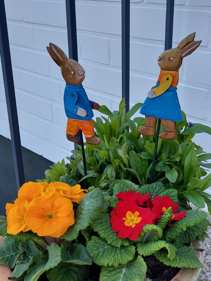 Auch ich wünsche euch allen frohe, sonnige und erholsame Feiertage. Der Osterhase mit seiner Frau hat sich schon vor unserer Haustür eingefunden.
