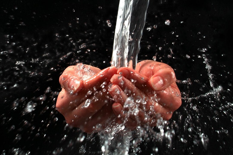 In den Tropfen zeigen sich die Interferenzfarben auf der rötlich/blau erscheinenden CD-Oberfläche. Re: Challenge 06/2018 • Quell des LebensEin kleiner Wasserfall: