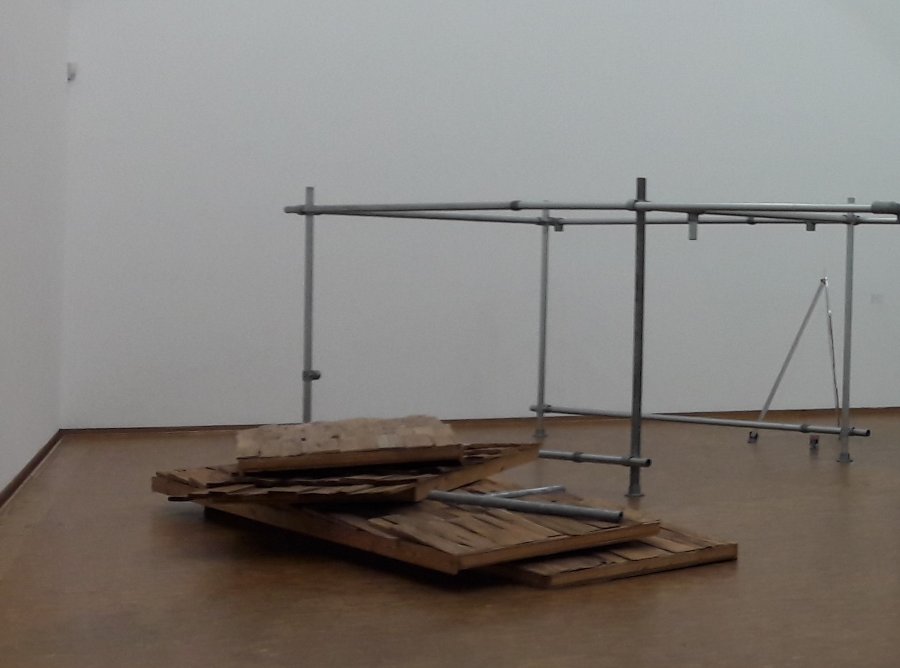Kunigunde Re: Challenge 07/2020 • Ist das Kunst?Diese begehbare Skulptur zum Beispiel, ebenfalls im Museum Ludwig, in der Sammlung Gegenwartskunst, Jimmie Durhams "Building a Nation", erschliesst sich mir nicht. Da habe ich mich schon gefragt, ob das irgendwem auffallen würde, wenn ich da noch einen zerbrochenen Aussenspiegel oder alten Farbeimer dazu legen würde. Aber das macht man ja dann doch nicht