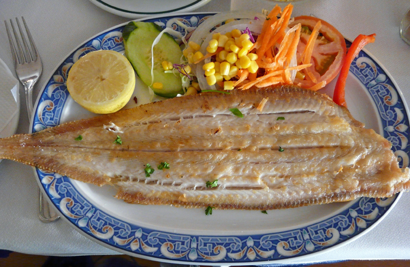 Am schlimmsten finde ich das Brathähnchen von @ogonogondo :mrgreen: Hier was "Herkömmliches": Eine Seezunge, fotografiert in einem Restaurant in Los Gigantes/Teneriffa LG