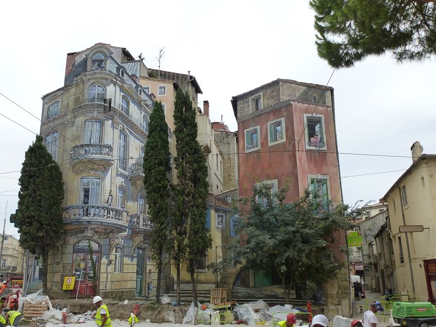 Silber-Distel Re: Challenge 07/2020 • Ist das Kunst?Unterwegs trifft man gelegentlich auf Trompe-l'oeil-Malerei. Ein besonders schönes Beispiel ist dieses Haus in Montpellier. Leider kam man wegen der Baustelle nicht näher haran.