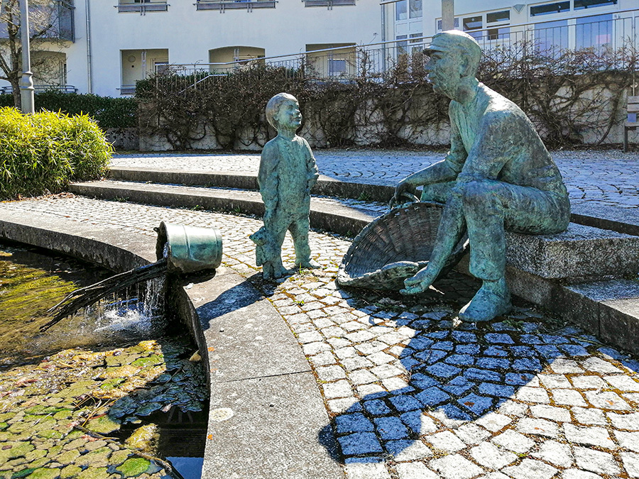 Re: Challenge 04/2020 • StadtgesichtKorbmacher mit Kind vor unserer Senioren-Wohnanlage. Die beiden Personen sind früheren Dorfbewohnern nachempfunden. Wer sie kannte, weiß genau wen sie darstellen.