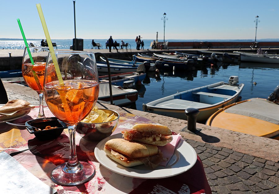 Panino con prosciutto crudo und dazu einen Aperol Spritz, hoffentlich kann ich das bald mal wieder am Gardasee genießen.