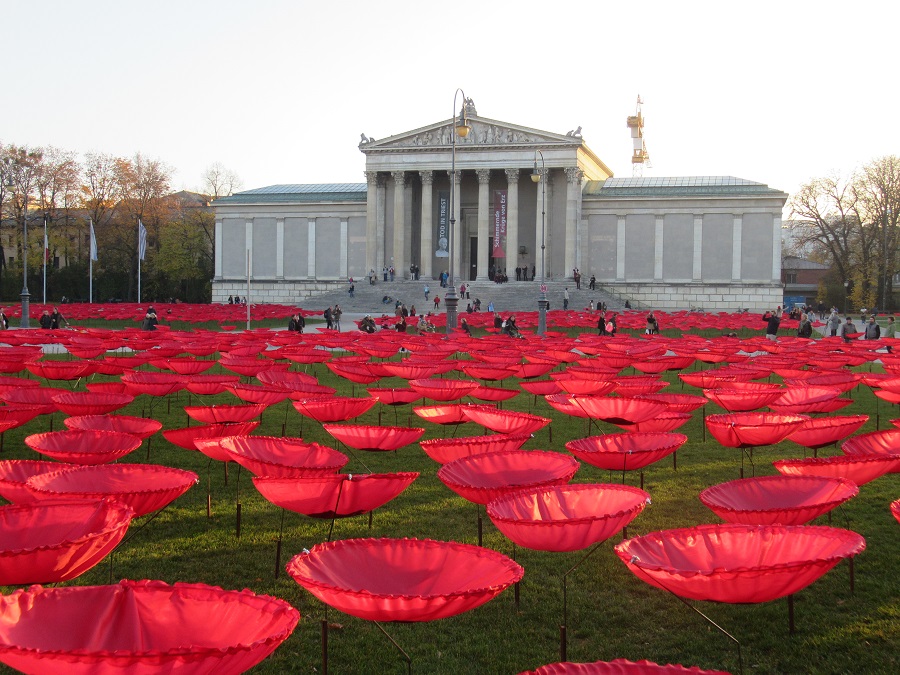 Spica Re: Challenge 03/2019 • Lila Kühe & Rosa ElefantenMeine Lieblingsfarbe ist rot mit allen dazugehörigen Farbnuancen wie rosa und pink. Und meine Lieblingsblumen sind Mohnblumen. Im November wurden in München anlässlich einer Kunstaktion 3.000 kunstseidene Mohnblumen aufgestellt.