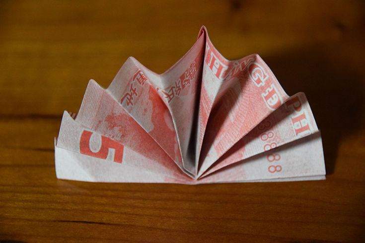 Heute kann ich es mir leisten, dazu Geldscheine zu verwenden (echtes Falschgeld aus Vietnam) Re: Challenge 08/2019 • Segler aus PapierUnd weil man mit Geld so schön falten kann, ein Kästchen fürs Kleingeld