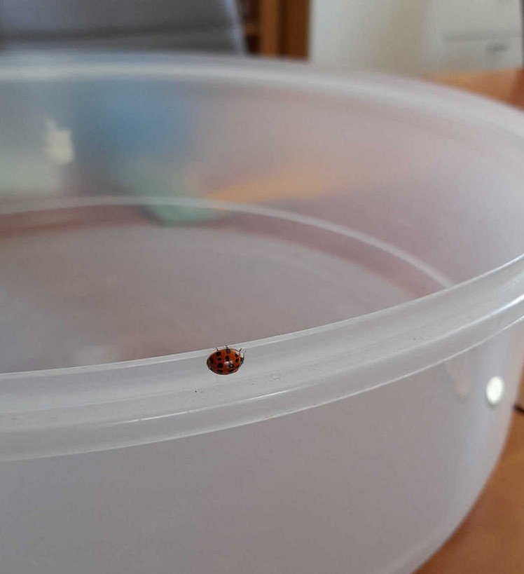 Ich glaube, dass das nicht die Sorte Hausbesetzer ist, die Sylke gemeint hat, es sei denn, sie bringt jede Menge Flöhe mit! Name des Besuchers : " Dittsche " Tierart : Hauskatze IMG_20200803_104431wp.jpg Re: Challenge 08/2020 • HausbesetzerWas habe ich da eben auf meiner Schüssel gesehen.... ein kleiner Marienkäfer. Mag ich zwar, aber wer keine Miete zahlt, fliegt trotzdem raus.