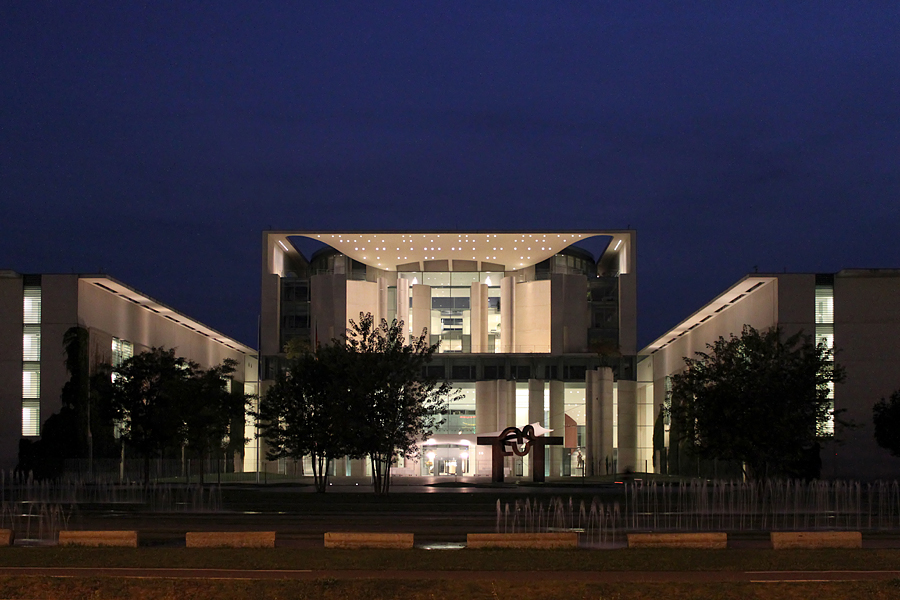 Anmerkung zu den Bildern der Lichtprojektion: In eine große Lichtspielbühne verwandelt sich das Marie-Elisabeth-Lüders-Haus im Berliner Parlamentsviertel. Täglich findet ab 22 Uhr (Ende Juni bis zum Tag der Deutschen Einheit) mit Einsetzen der Dunkelheit eine Film-, Licht- und Tonprojektion an der Fassade des Marie-Elisabeth-Lüders-Hauses an der Spree statt. (Quelle: Deutscher Bundestag) Die halbstündige Installation trägt den Titel "Dem deutschen Volke — Eine parlamentarische Spurensuche. Vom Reichstag zum Bundestag". Er zeigt die Geschichte des Parlamentarismus in Deutschland und des Berliner Reichstagsgebäudes.