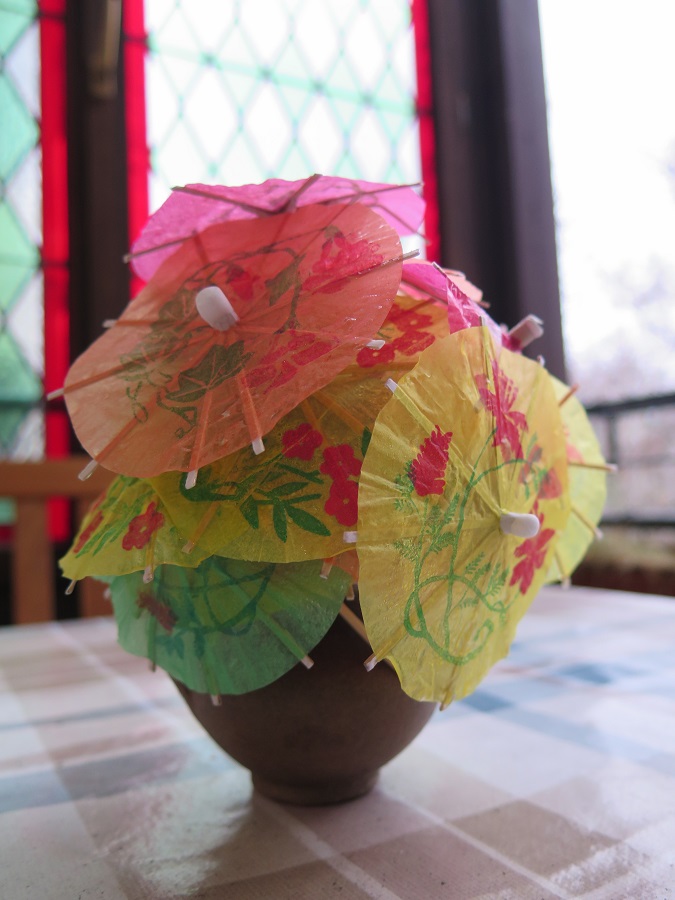 Spica Re: Challenge 02/2019 • I'm singing in the rain!Die Kuscheltiere hatten die Gelegenheit genutzt und zwischenzeitlich zur Party geladen. Also schnell noch einen Schirmchenstrauß arrangieren und dann nix wie hin!
