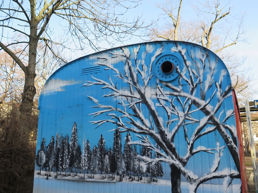Spica Re: Challenge 03/2019 • Lila Kühe & Rosa ElefantenBlaues Graffiti passend zum Park im Hintergrund.