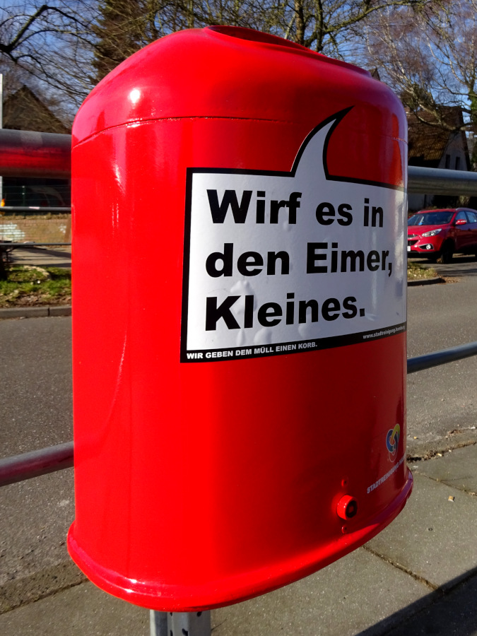 Re: Challenge 03/2019 • Lila Kühe & Rosa ElefantenDa dieser Mülleimer direkt vor der Schule hängt, wäre es naheliegend den Reim auf "Kleiner" zu enden.