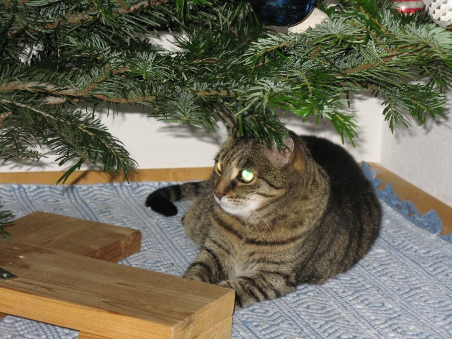 Re: Die Advents-Foto-Challenge 2024In meinem Archiv habe ich noch ein Foto von unserer damaligen Katze gefunden - am 24.12.2009 unter dem Christbaum sitzend.