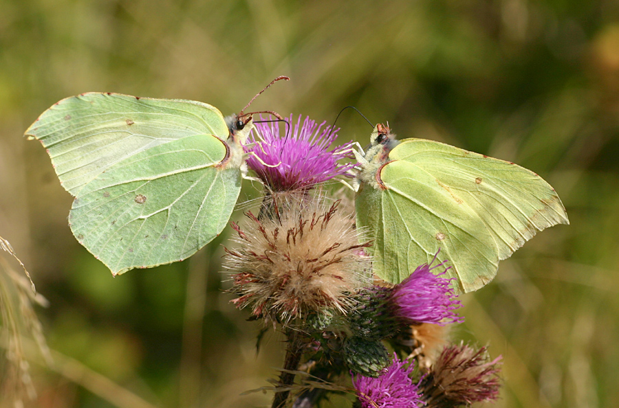 Re: Challenge 04/2015 • Gleich und gleich gesellt sich gerneGemeinsam schmeckt's einfach besser. Zitronenfalter beim Schlemmen.