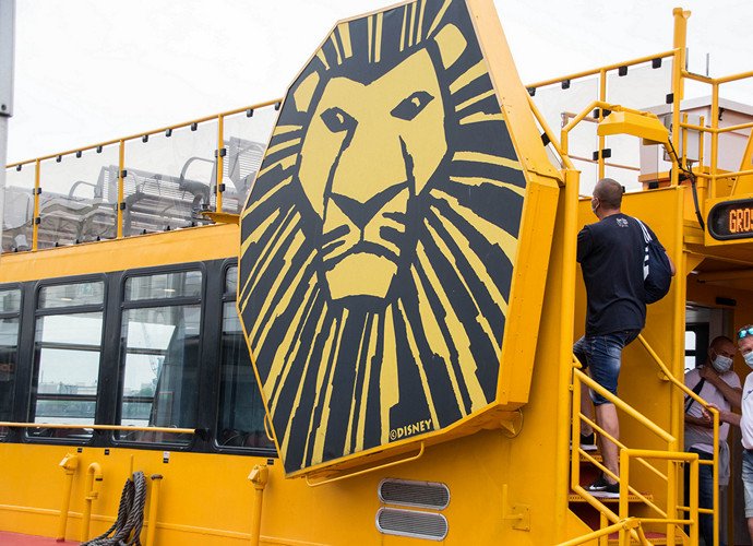 Quietschgelb kam die Fähre an, mit der Musical-Werbung. Da geht natürlich noch nichts, aber zumindest für ein Foto war der Löwe gut. Re: Challenge 07/2021 • Alles gelb!Hallo Monika,