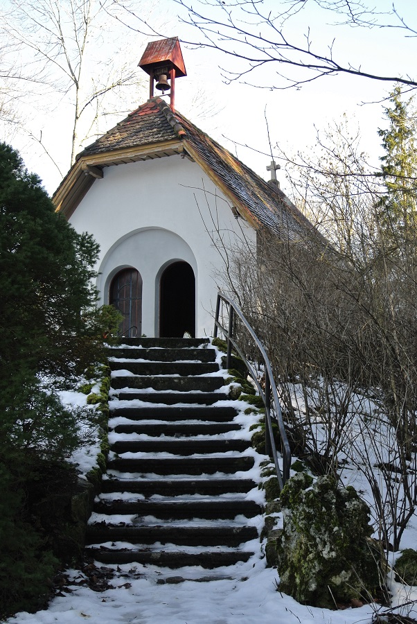 Dieser Weg führt von der Maria Buch Kapelle zum Kloster Neresheim. Der Weg war windgeschützten Weg, aber dafür waren sowohl der Weg und die Stufen bei der Kapelle vereist.