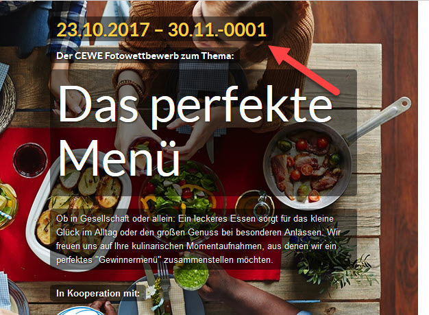 ich kann den Sinn deiner Aussage leider nicht greifen. Was möchtest du mir damit sagen bzw. welche Antwort erwartest du von mir? Es gibt regional eine andere Deutung, wenn auch Verträge oder dergleichen natürlich auf eine gesetzliche Grundlage basieren. Um einen Vertrag oder Vertragsbruch geht es hier nicht. Weiter oben habe ich unsere Sicht der Dinge erklärt und die zuständige Abteilung über die Irritation in Kenntnis gesetzt. Diese Abteilung wird prüfen, wie künftige Wettbewerbe aufgesetzt werden. Der Wettbewerb "Das perfekte Menü" und auch "Fotosafari" wurden um Mitternacht beendet. Auch wenn das Datum durch die erneute Öffnung auf den 01.03 gesetzt wurde, dass ist systembedingt, konnten nur gestern weitere Bilder hochgeladen werden. Sylke Re: Wettbewerb: Das perfekte MenüDa steht doch ganz deutlich das Wettbewerbsende