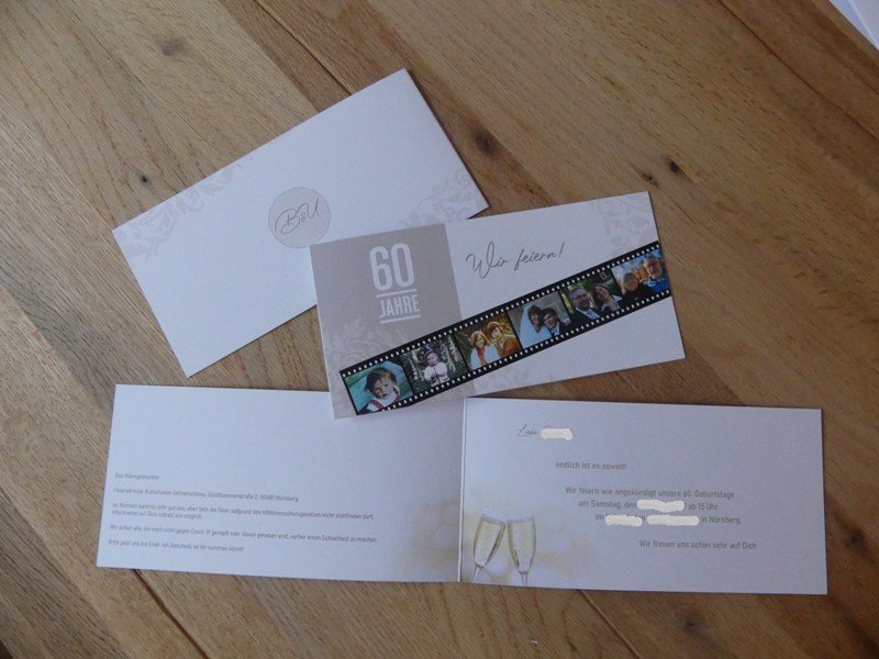 ich habe meine Karten nun doch heute noch bei CEWE direkt bestellt und als Lieferdatum den 17.6. genannt bekommen, also Donnertag. CEWE war bisher immer pünktlich und meistens sogar etwas schneller als zugesagt, also bin ich zuversichtlich, dass ich die Einladungen noch pünktlich verschicken kann. Ich mache so etwas normalerweise nicht auf den letzten Drücker, aber leider haben wir die definitive Zusage für die Location erst gestern bekommen. Es ist halt immer noch Ausnahmesituation gerade ... Viele Grüsse