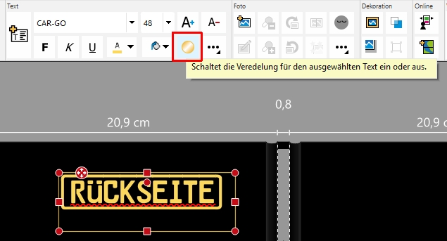 Ich habe zwei Texte auf dem Cover und wollte nur den einen veredeln (ein Wort), aber es werden automatisch immer beide Textstellen veredelt oder eben nicht veredelt.